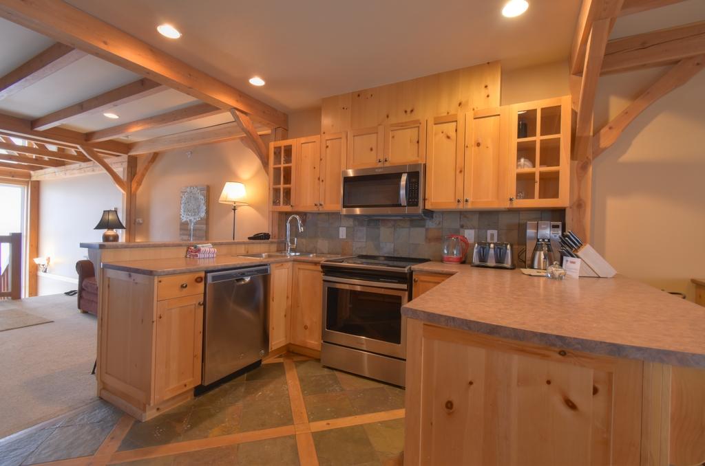 These popular multi-level ski to/ski from luxury townhouse style condominiums feature exposed timber posts and beams, huge windows and attractive furnishings which blend perfectly to create a sense of warmth and character in a beautiful holiday home. The units include open living areas and fully equipped kitchens with a large dining room. Private balconies with hot tubs and impressive views of the Monashee Mountains add the final touches to make these condominiums an excellent choice for premium family lodging.